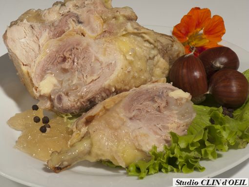 Poulet, sel, poivre, servir frais sur la gelée naturelle du poulet, très onctueux...