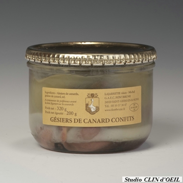 Gésiers de Canard, Graisse de Canard Sel poids net égoutté 200g